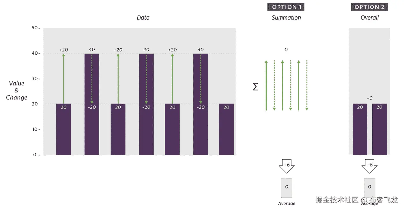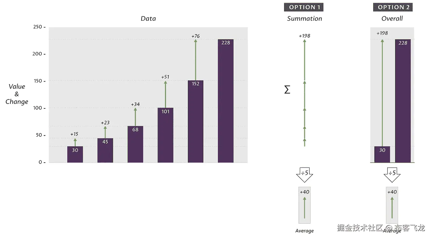 处理简单数值时,变化总和与总体变化相同。这就是为什么选项 2 很诱人。**
