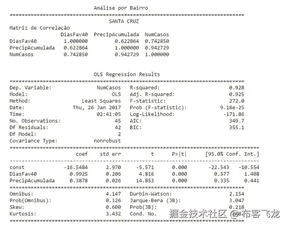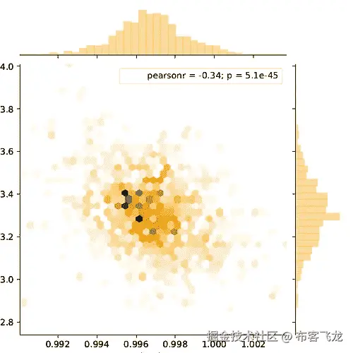 得到的相关系数是-0.19,这是一个负的但微弱的相关性。这与上面绘制的线性回归相匹配。