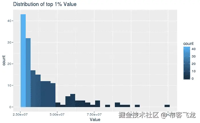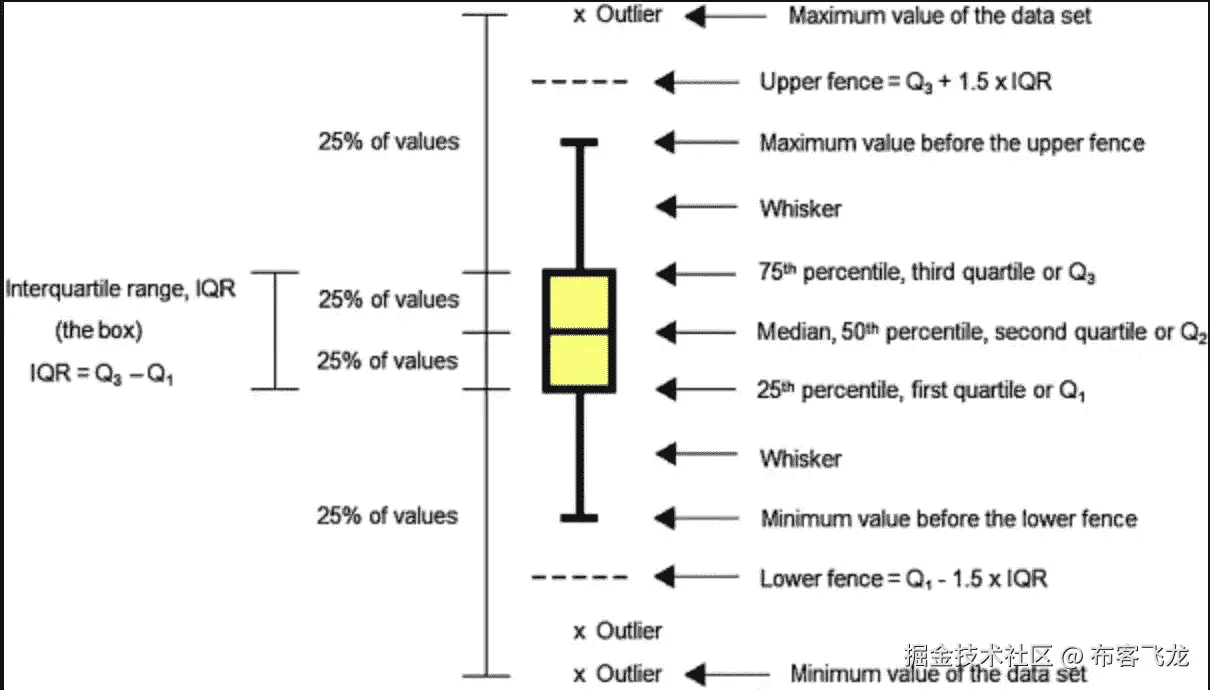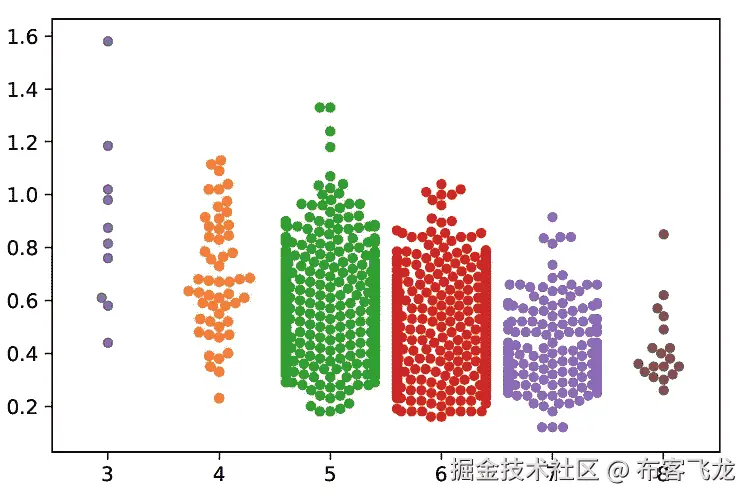 上面方框图中的黑色水平线是中间值,这意味着上面图中的大多数小点都是异常值。我们认为异常值是中位数的四分位数范围的一倍半。按照这种逻辑,这个数据集中有很多离群值。