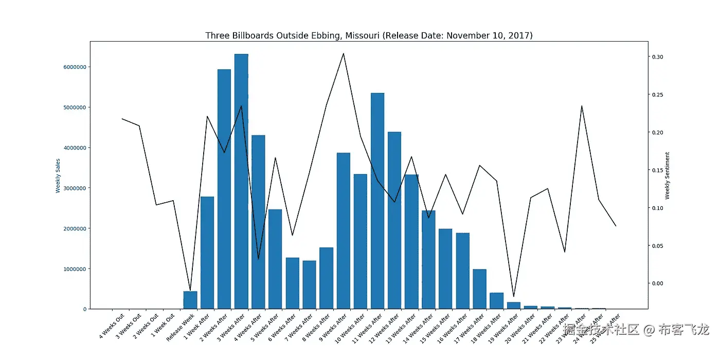 在收集推文并计算情绪后,我们使用 python 中的 pandas 和 matplotlib 来可视化每周情绪变化和推文数量与票房之间的关系。以下是工作流程的整体架构: