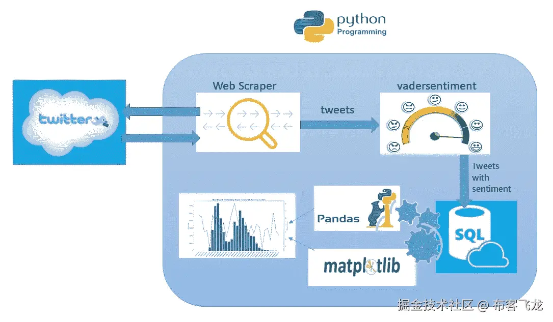 从技术角度来看,我们将使用数据科学和数据可视化技术和工具来解决这个问题。我们广泛使用 python 来实现这个项目。为了收集推文,我们有两个选择:1-使用 twitter API(像 tweepy )。2-使用 web 抓取技术来手动解析推文。在这种情况下,我决定使用网络抓取来收集推文,因为 tweepy API 非常慢,而且有一些限制。对于抓取任务,我决定使用 python 中的 beautiful Soup 编写一个 web scraper,但随后我做了一个随机搜索,以检查是否有人已经这样做了。我发现了 Twitter 搜索的一个很好的 python 实现,它让我的生活变得更加轻松。然后我修改了它的代码,这样推文就可以保存到 sql 数据库中。
