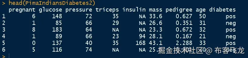 head(PimaIndiansDiabetes2)**