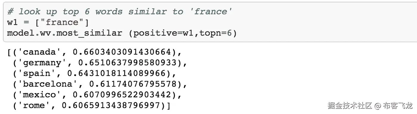使用这个基本的假设,您可以使用 Word2Vec 来表现相似的概念,找到不相关的概念,计算两个单词之间的相似性,等等!