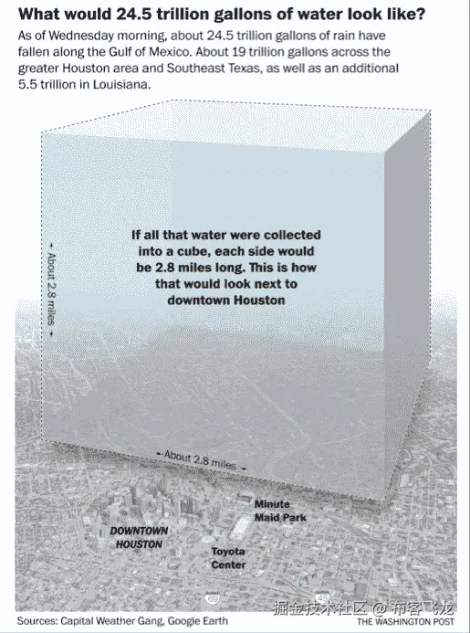 尽管哈维在周五登陆,但在接下来的几天里,暴雨天气仍在持续。据估计,截至周三 30 日,令人难以置信的 24.5 万亿加仑的雨水从墨西哥湾倾泻到休斯顿和德克萨斯州南部。