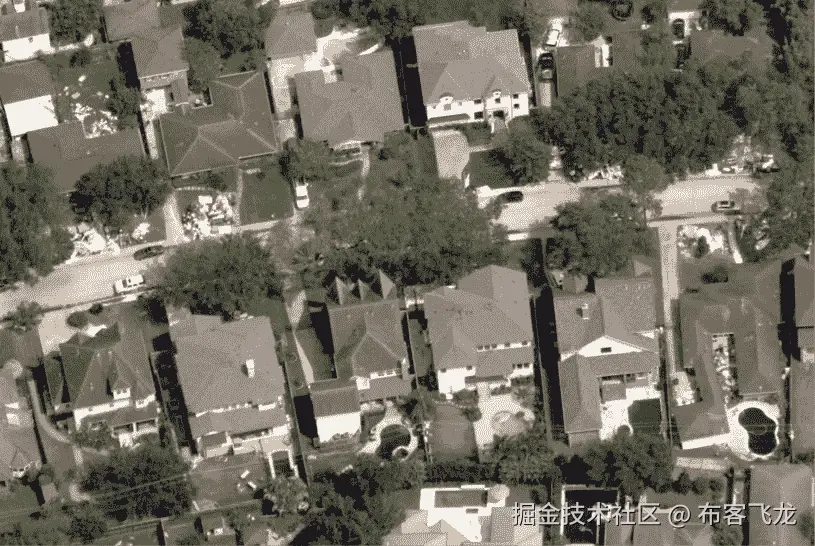 凭借这种分辨率和大量数据,地理空间洞察团队可以识别洪水的证据,如房屋外的残留水、沉积物和废物,即使洪水已经排干。下图是一个展示家居用品被处理的例子。你可以清楚地看到,与那些被风暴潮毁坏的游泳池相比,凸起的游泳池仍然保持干净和蓝色。