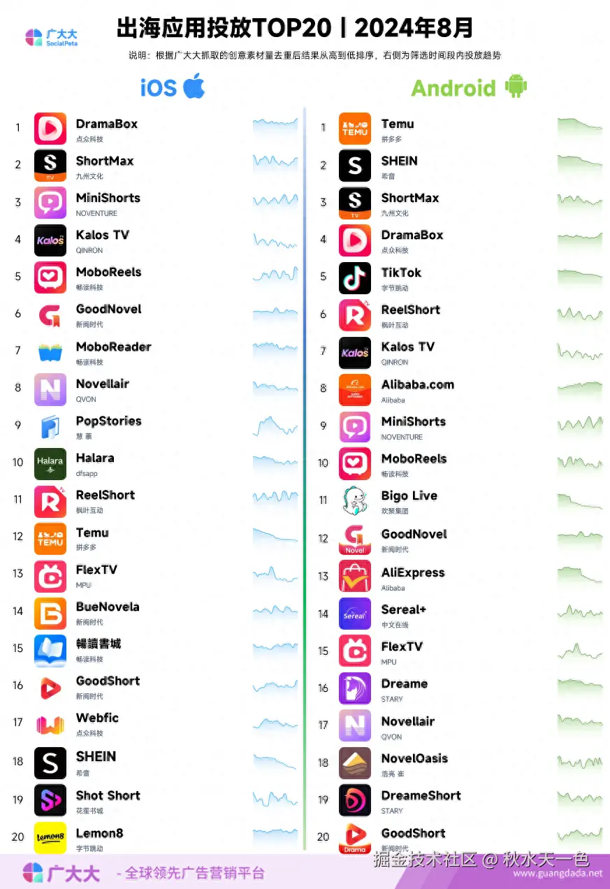 2024年8月成功出海应用App-投放TOP20