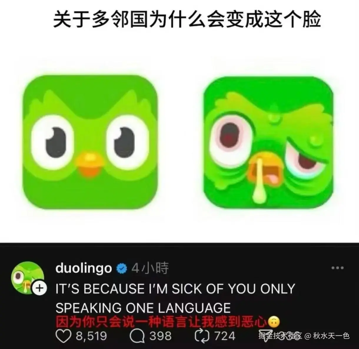 喜欢用自己图标整活的【Duolingo】这次又整新活,“禽流感”式图标让海内外网友都再次被震惊,甚至有网友说要把“它”隔离,免得死在自己手机上了。这种社媒整活的疯狂传播让其双端都迎来小幅收入上涨,其中AppStore收入上涨约8.9%,Google Play上涨约23.2%,运营组加大分。