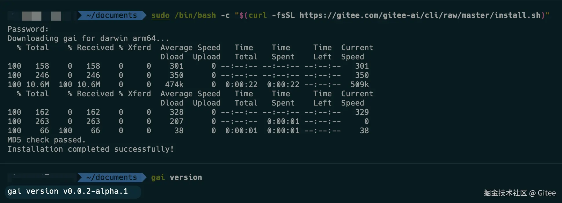 随后运行下面的命令,下载并安装gai: