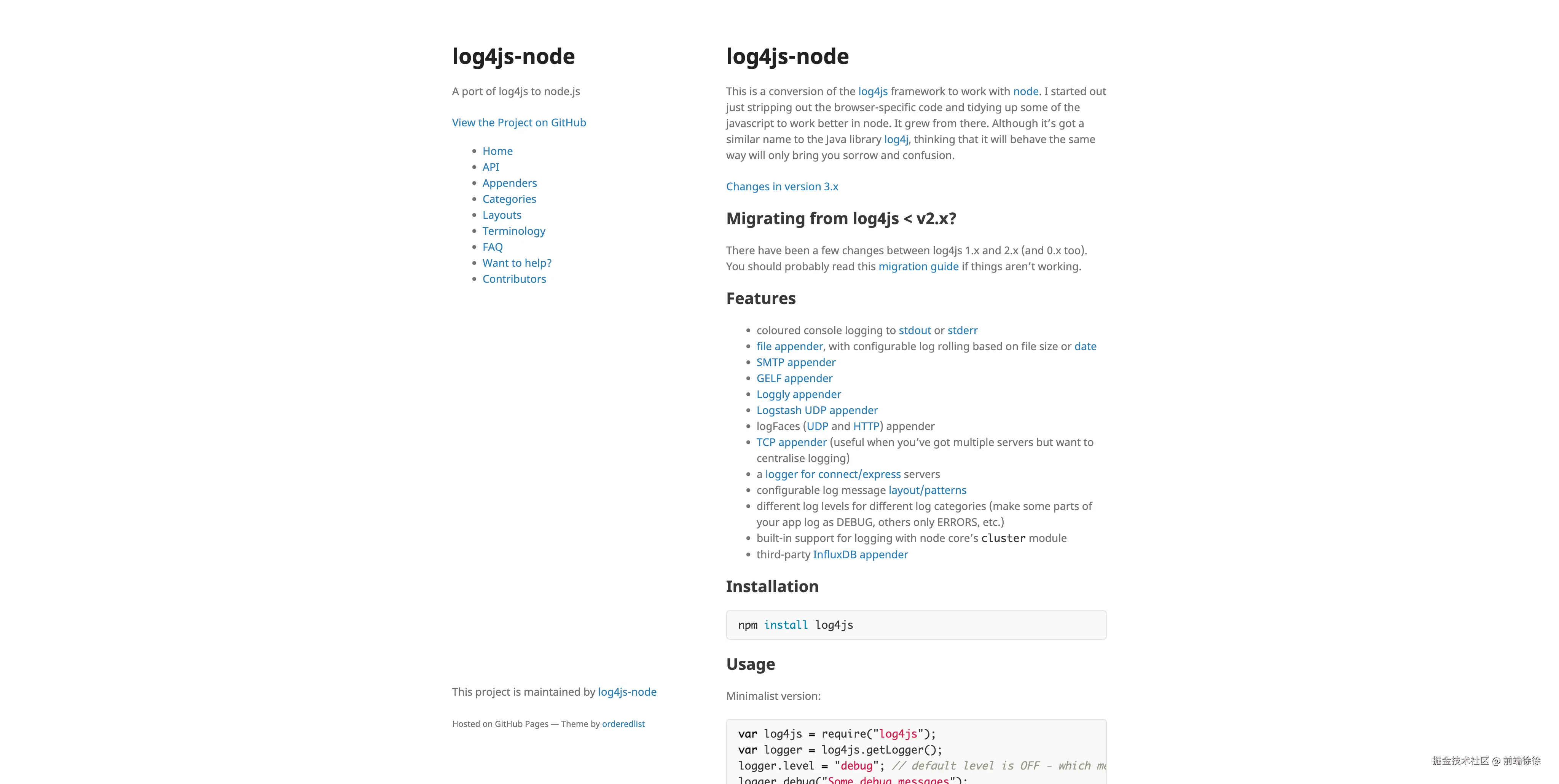 - 官网: log4js-node.github.io/log4js-node…