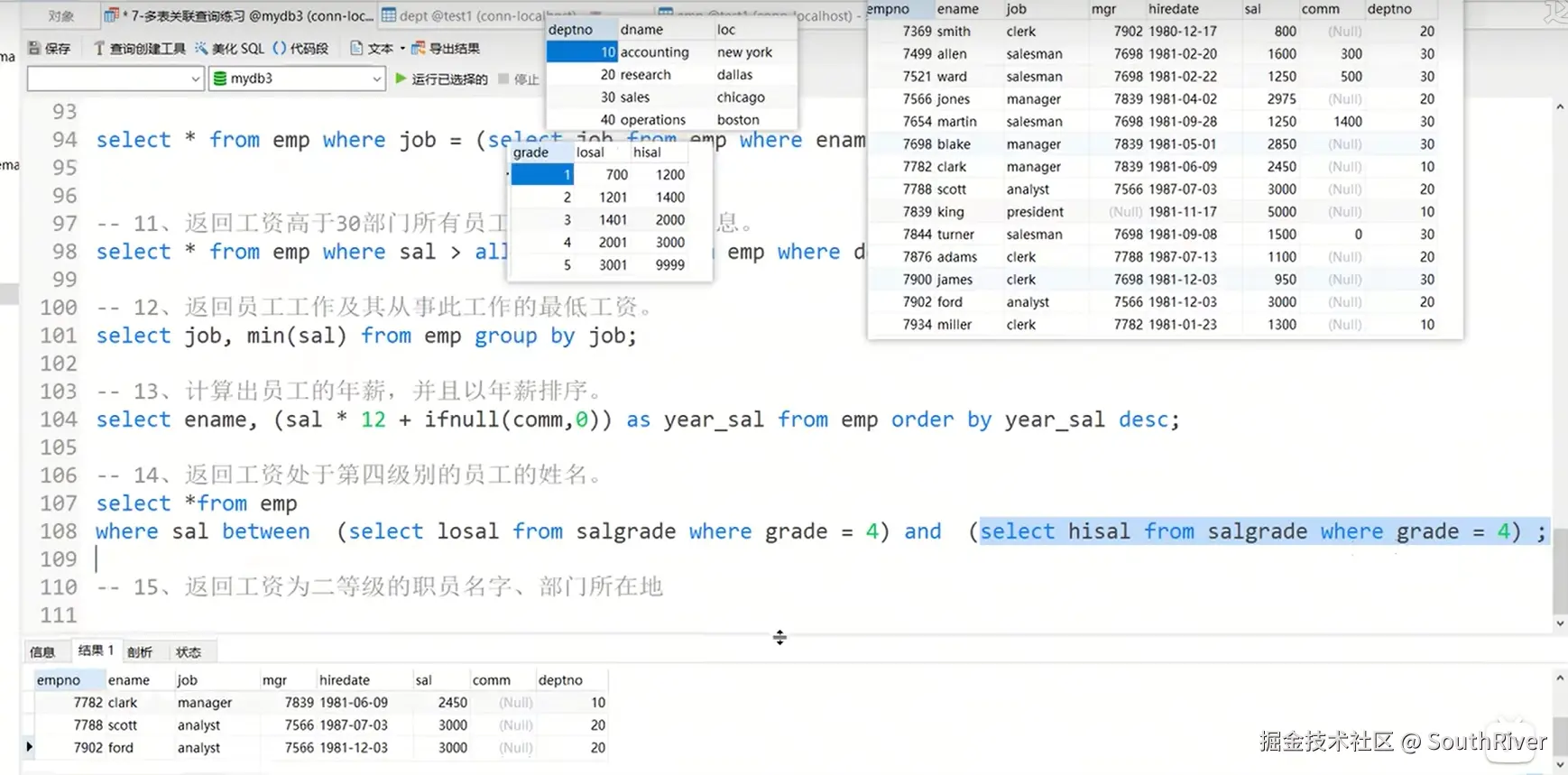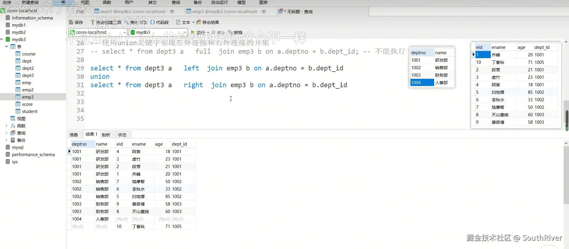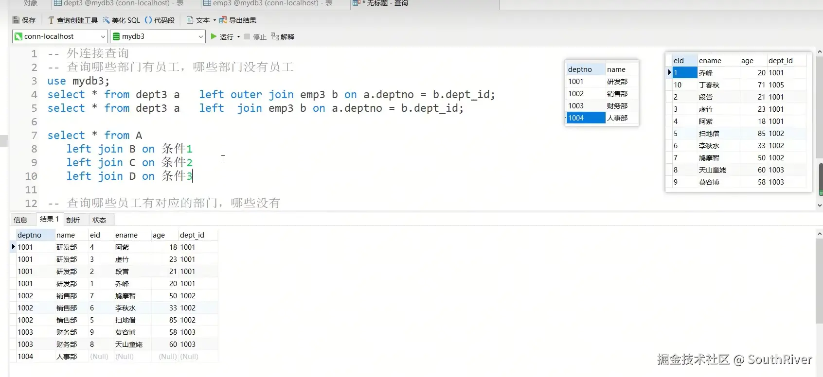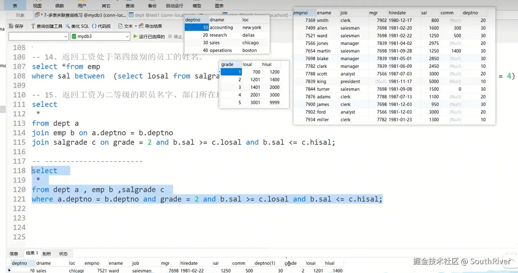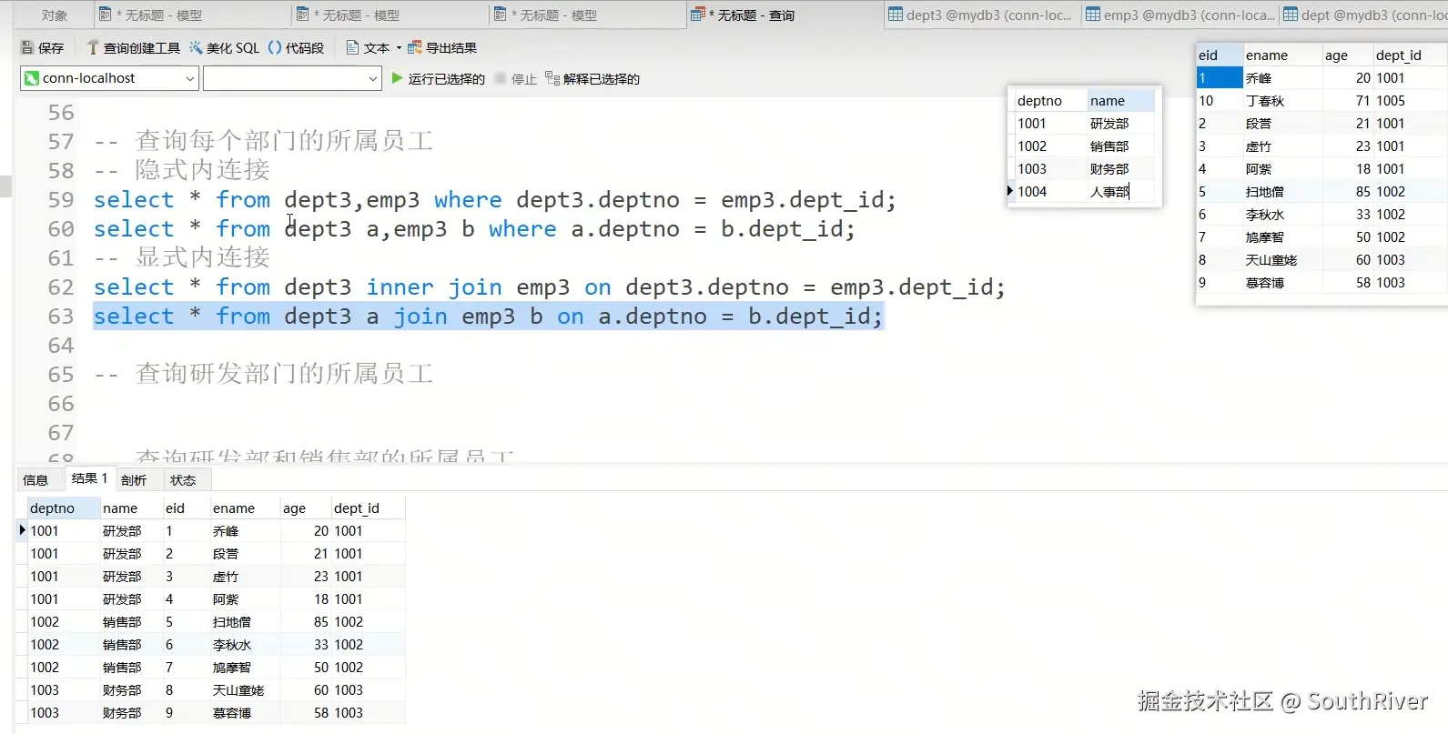 MySql学习笔记_第一篇 SouthRiver 2024-09-18 50 阅读1分钟 1. 删除表所有内容和清空表所有内容语句 delete form student truncate student 2. DQL单表查询,以及多表外键约束 3. 多表查询,内连接,外连接 3.1 内连接交集 3.2 外连接,左连接,右连接,满外连接 3.3 子查询 3.4 自关联查询 4. DQL 总结 练习