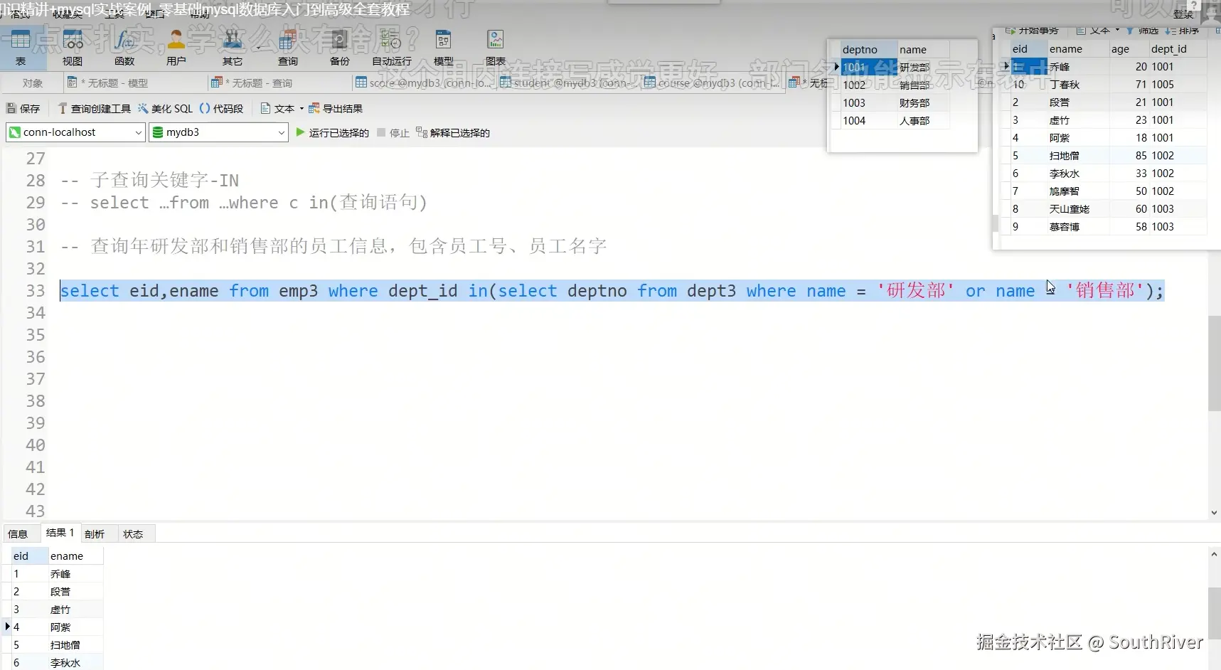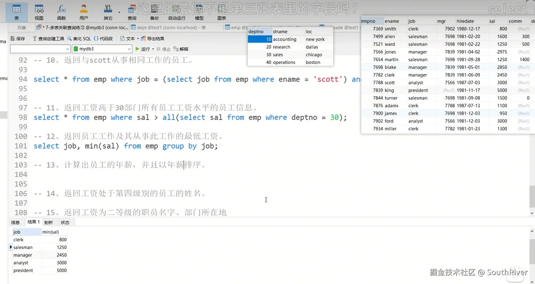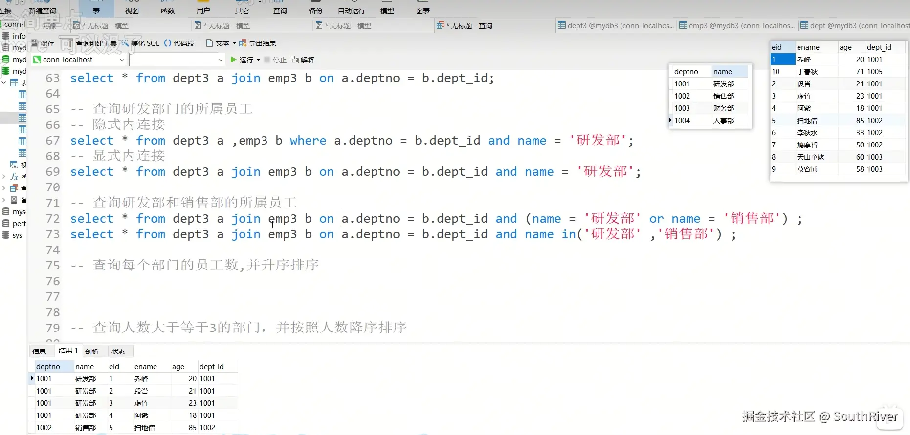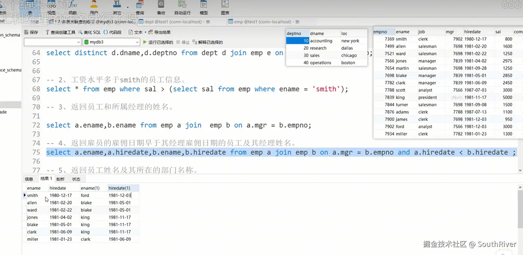 MySql学习笔记_第一篇 SouthRiver 2024-09-18 50 阅读1分钟 1. 删除表所有内容和清空表所有内容语句 delete form student truncate student 2. DQL单表查询,以及多表外键约束 3. 多表查询,内连接,外连接 3.1 内连接交集 3.2 外连接,左连接,右连接,满外连接 3.3 子查询 3.4 自关联查询 4. DQL 总结 练习
