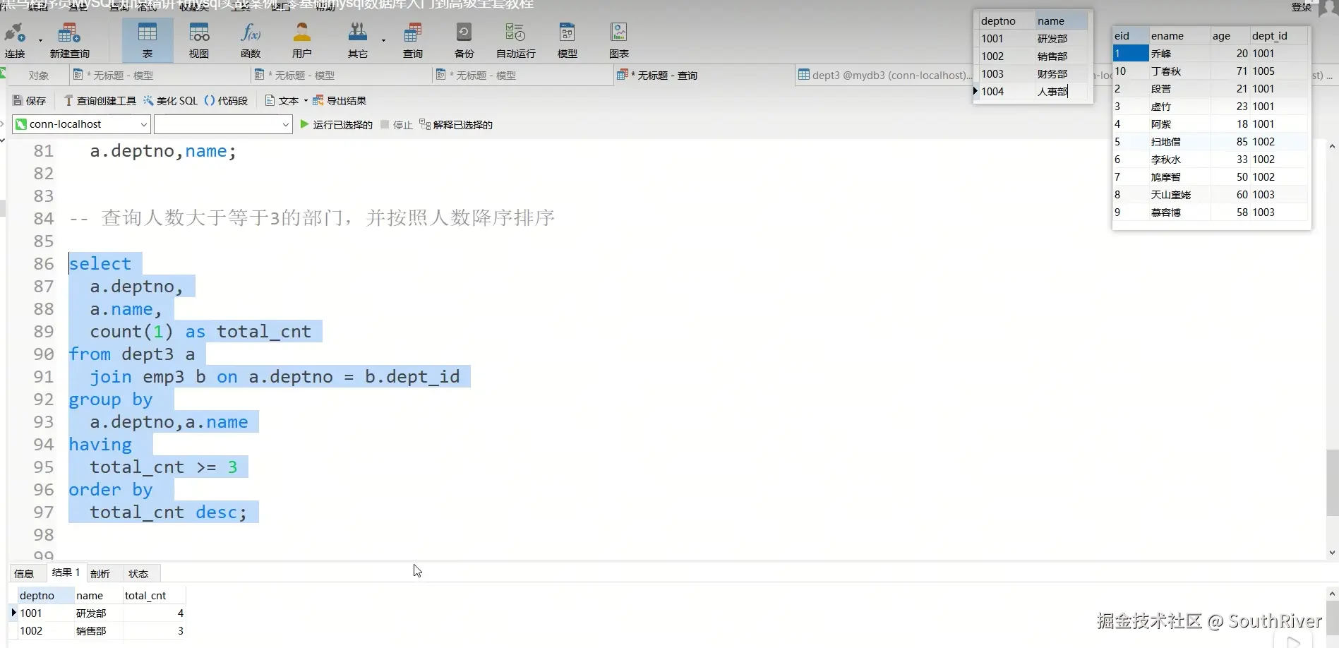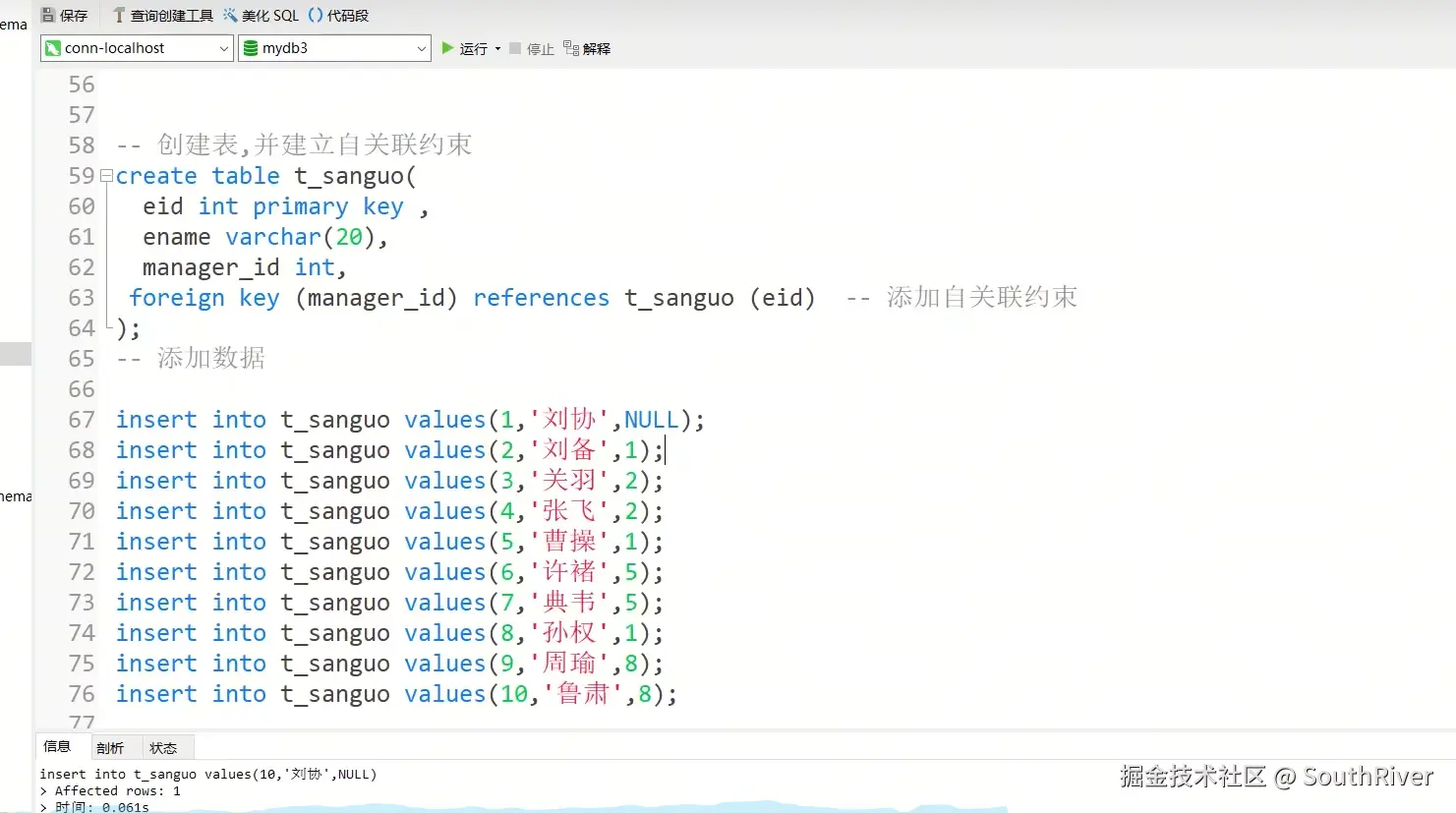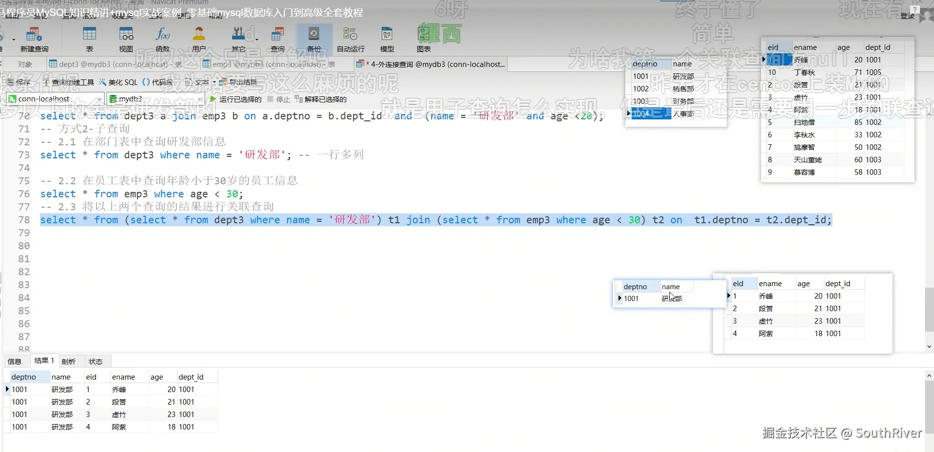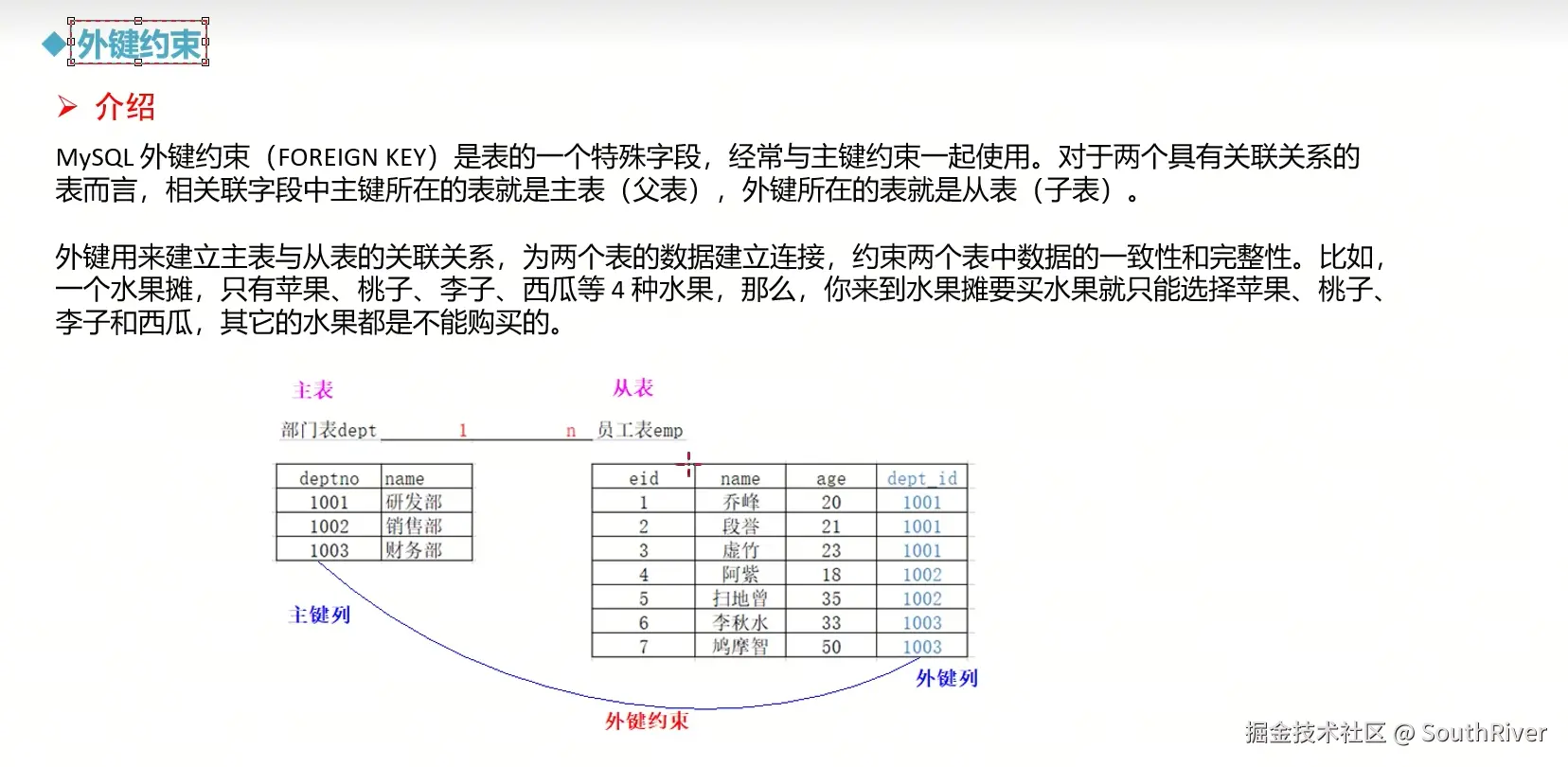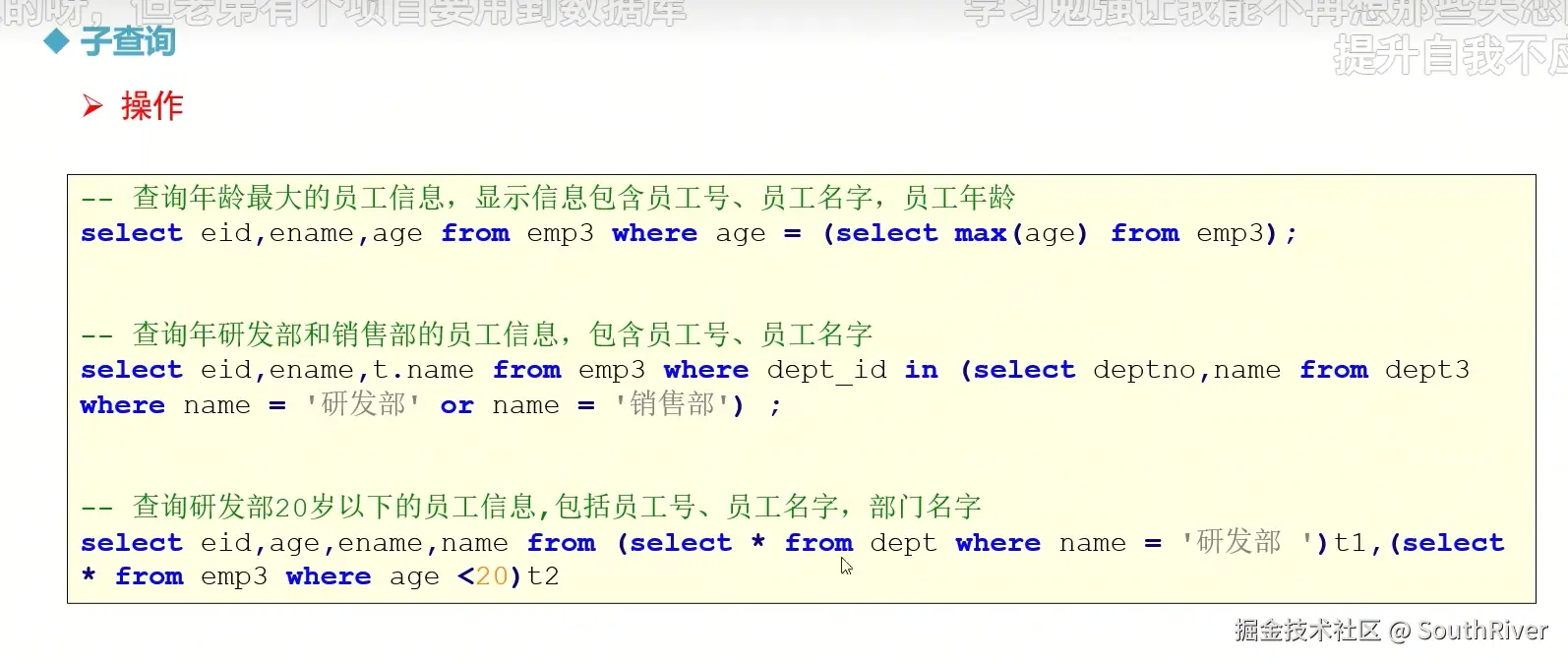 MySql学习笔记_第一篇 SouthRiver 2024-09-18 50 阅读1分钟 1. 删除表所有内容和清空表所有内容语句 delete form student truncate student 2. DQL单表查询,以及多表外键约束 3. 多表查询,内连接,外连接 3.1 内连接交集 3.2 外连接,左连接,右连接,满外连接 3.3 子查询 3.4 自关联查询 4. DQL 总结 练习