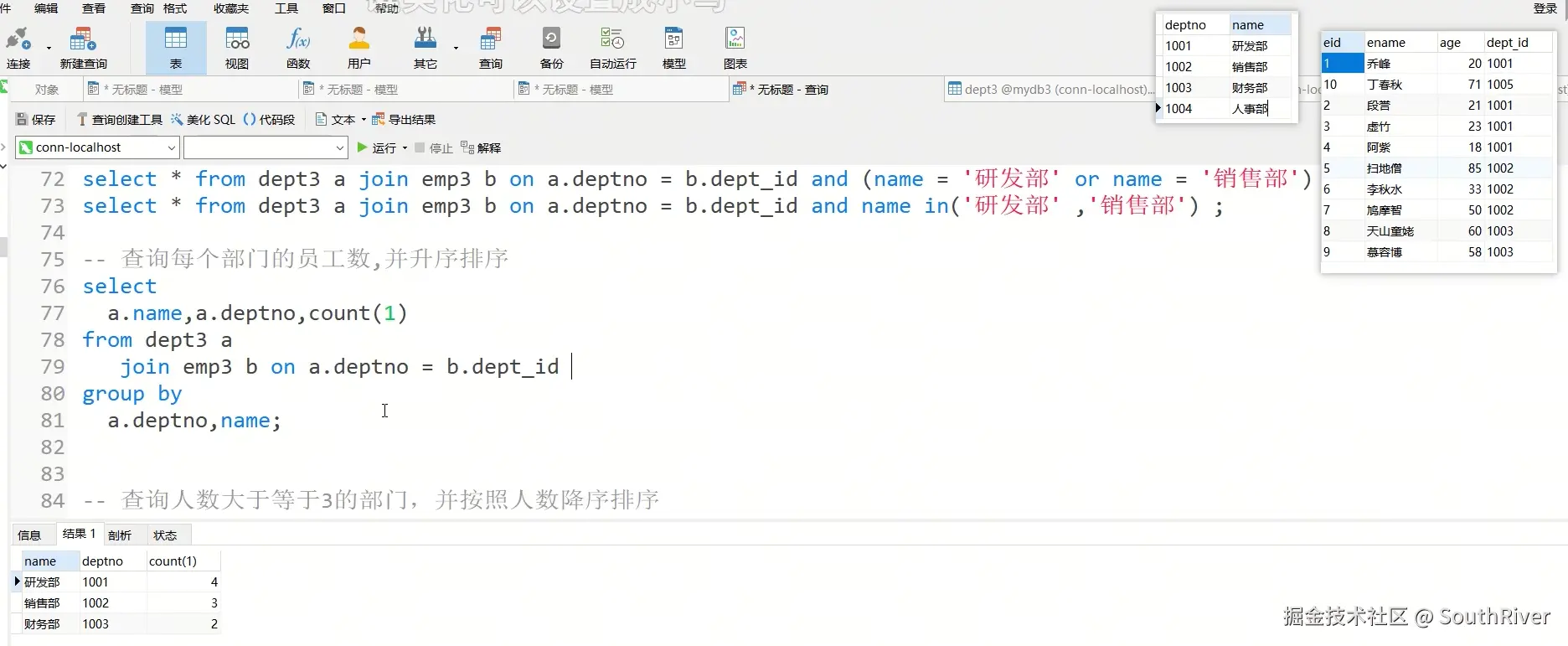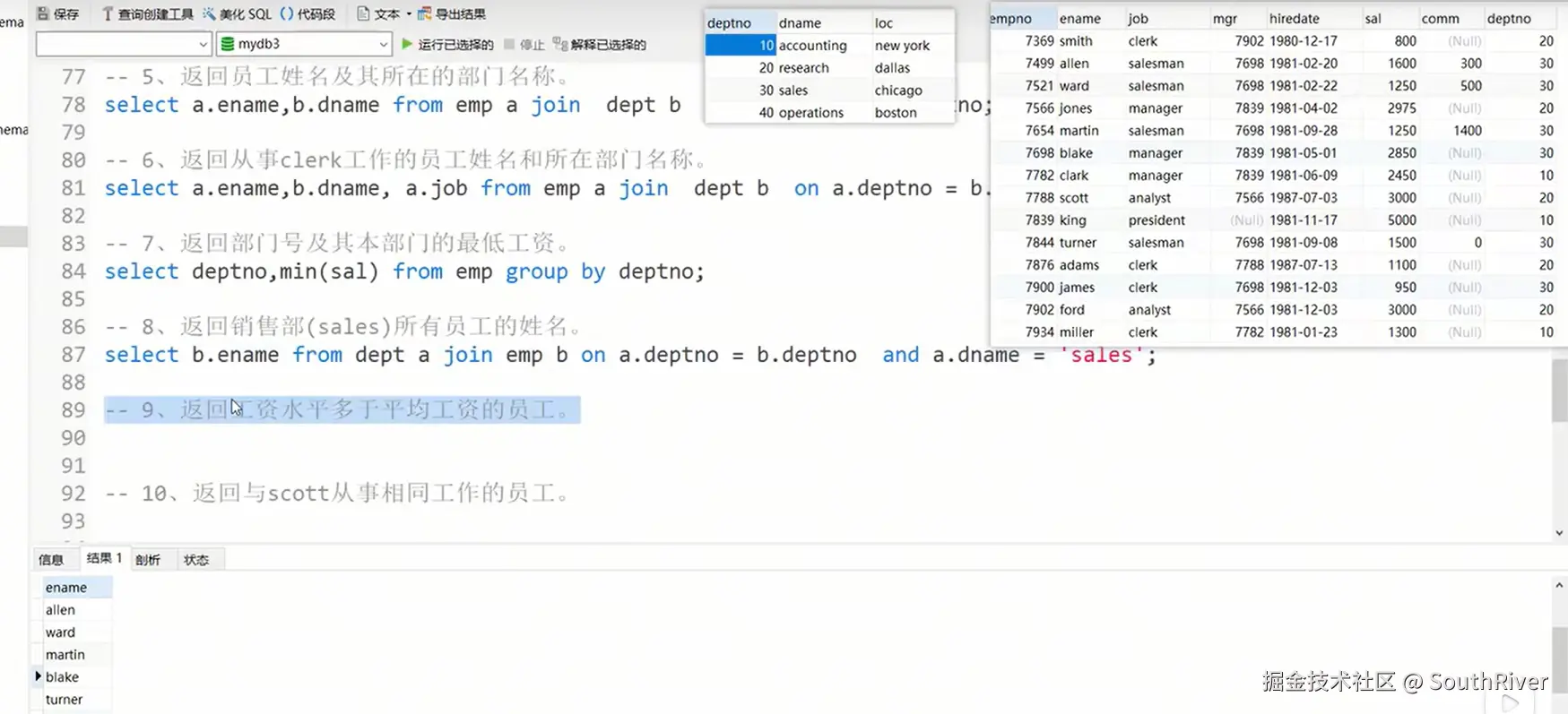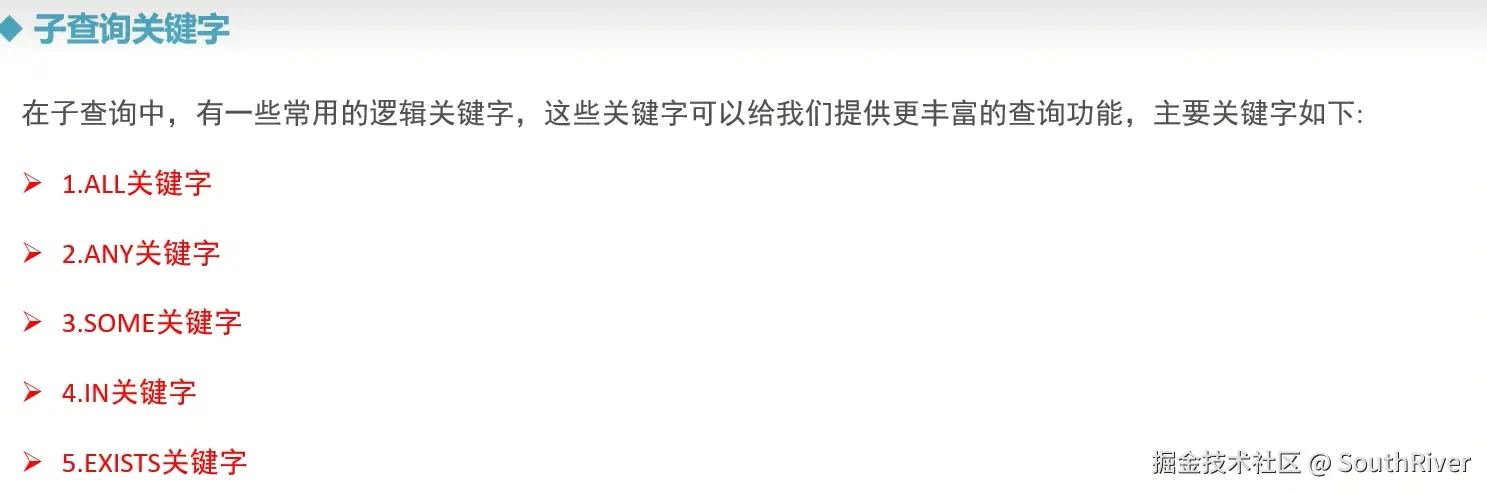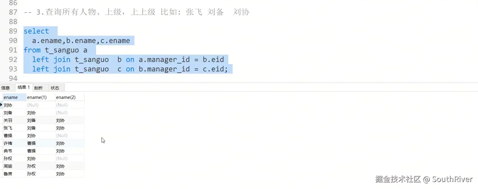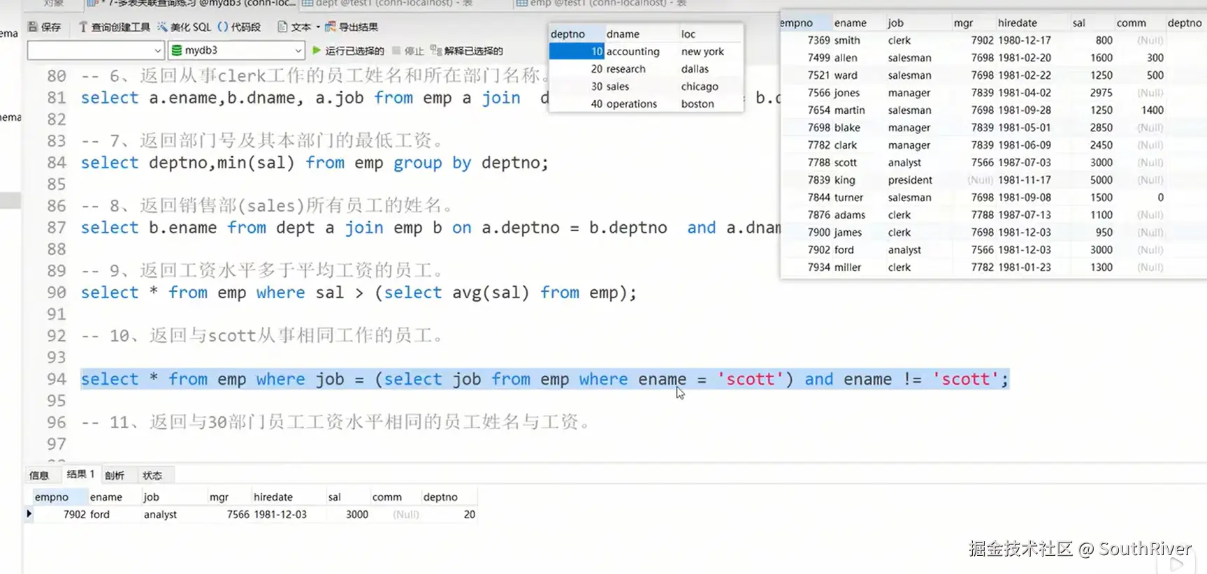 MySql学习笔记_第一篇 SouthRiver 2024-09-18 52 阅读1分钟 1. 删除表所有内容和清空表所有内容语句 delete form student truncate student 2. DQL单表查询,以及多表外键约束 3. 多表查询,内连接,外连接 3.1 内连接交集 3.2 外连接,左连接,右连接,满外连接 3.3 子查询 3.4 自关联查询 4. DQL 总结 练习