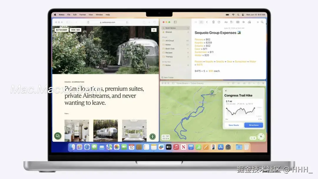 此外,macOS 现在会自动调整应用窗口大小以平铺它们并填满屏幕,从而充分利用最大的屏幕空间。