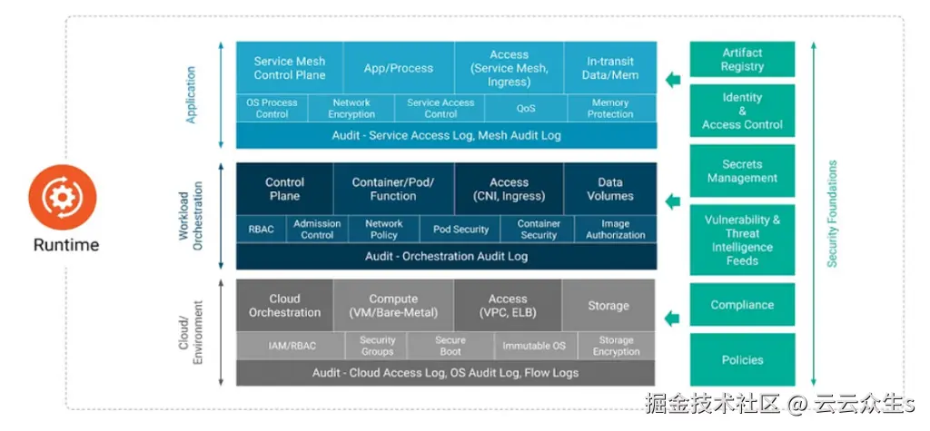 Kubernetes 的多方面性质意味着组织必须 维护安全性 在不同的层面上,包括基础设施、网络运行时、容器运行时、控制面板等。