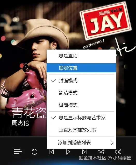 在这个模式下,仅显示歌曲封面和少量控制按钮。