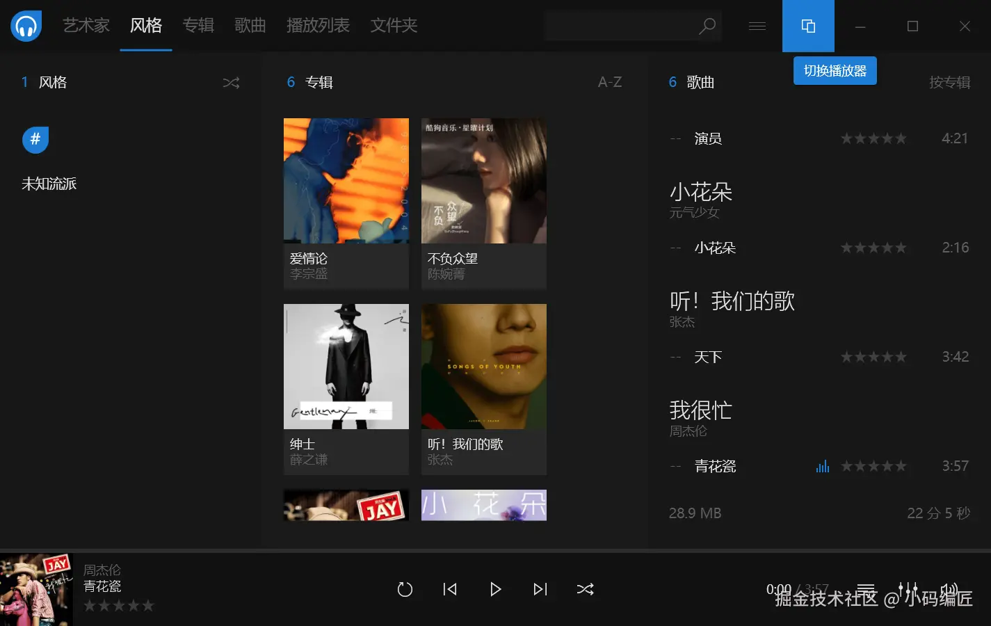 点击右上角的【切换播放器】按钮,可以开启【封面模式】。