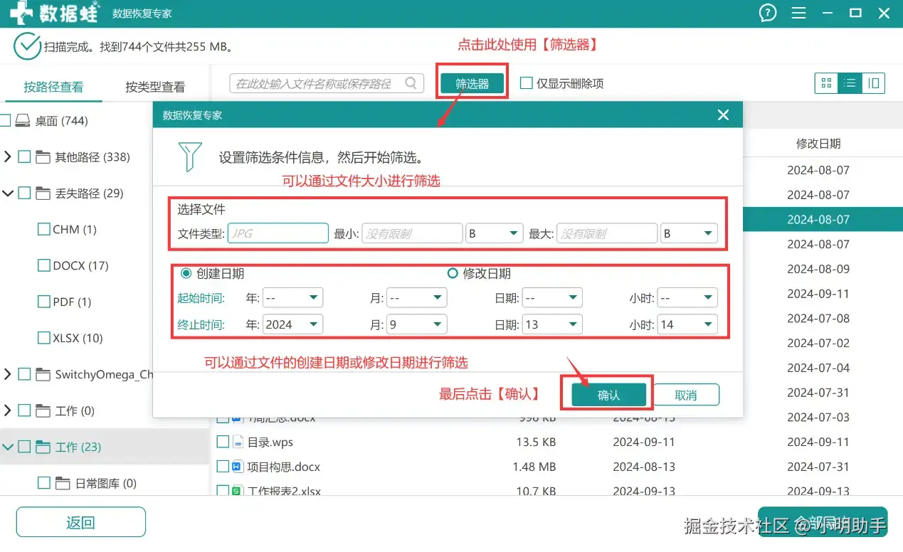 步骤2: 等待软件的扫描结果出现后,为了方便用户更为迅速找到需要恢复的文件,这款软件还提供【筛选器】功能。
