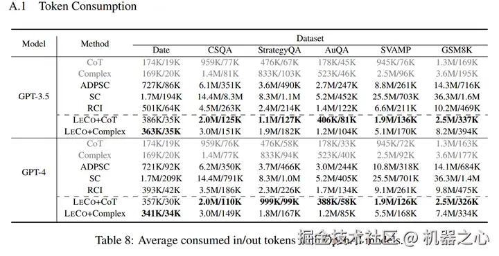 表 3:LeCo 和不同方法的 Token 消耗比较