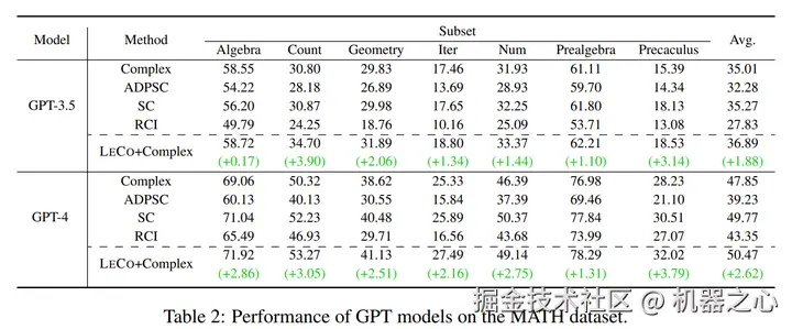 表 2:LeCo 在需要更加复杂的推理 MATH 上的表现