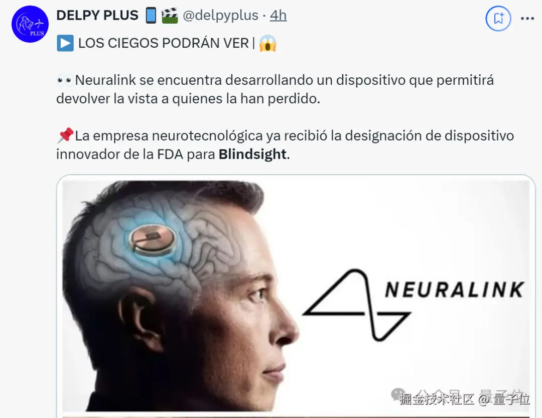 就在刚刚,马斯克宣布旗下 Neuralink 的大脑植入芯片 Blindsight,正式获得 FDA(美国食品药品监督管理局)“突破性设备认定”。