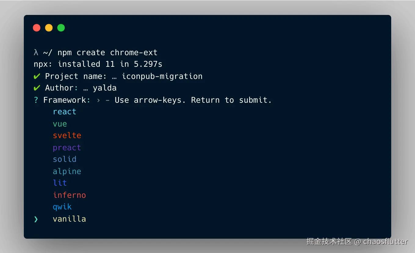λ npm create chrome-ext@latest my-crx-app -- --template react-ts