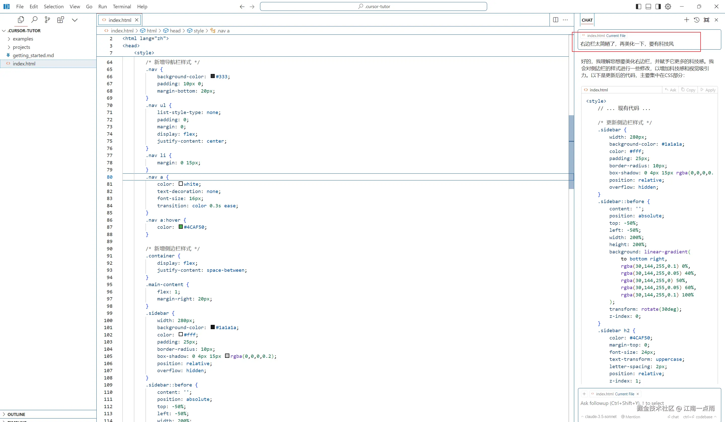 Cursor 的核心优势在于其内置的 AI 功能(称为 Copilot++),它可以根据用户的指令自动生成代码、提供代码建议,甚至帮助调试。