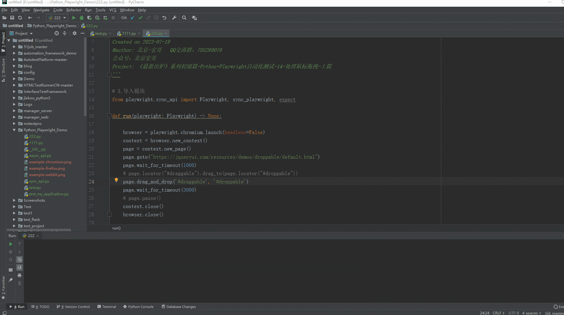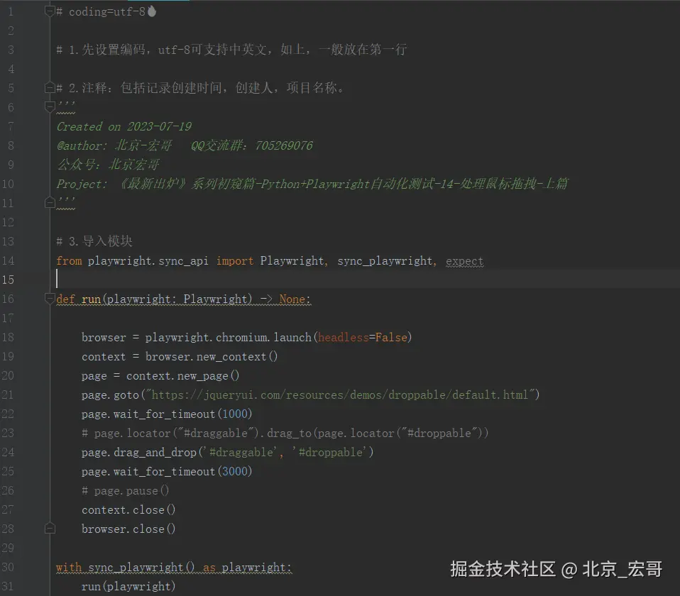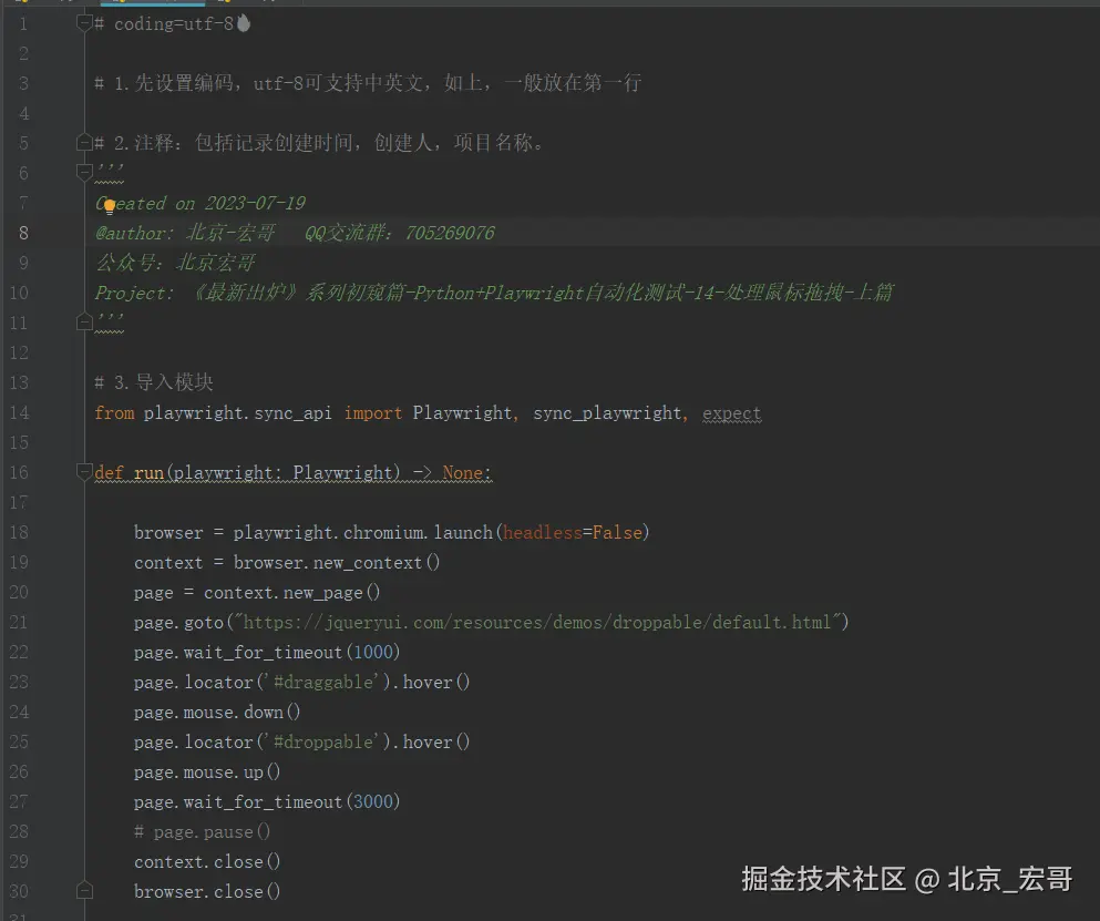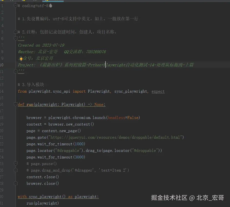 学习过Playwright的拖拽基础知识后,我们趁热打铁将其实践一下,以为我们更好的理解和记忆。宏哥这里JqueryUI网站的一个拖拽demo实战一下。