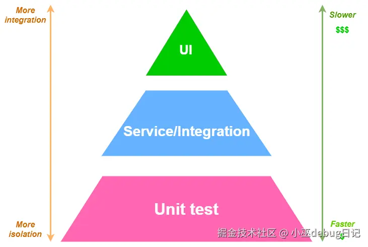 越接近代码的测试,速度也就越快,成本也就越低。单元测试就最贴近代码的,在开发过程中执行测试就越容易发现问题。另外覆盖率是测试金字塔的核心,越接近底层的测试覆盖率应该越高,所以我们通常会以代码覆盖率和增量代码覆盖率来佐证单元测试的效果。