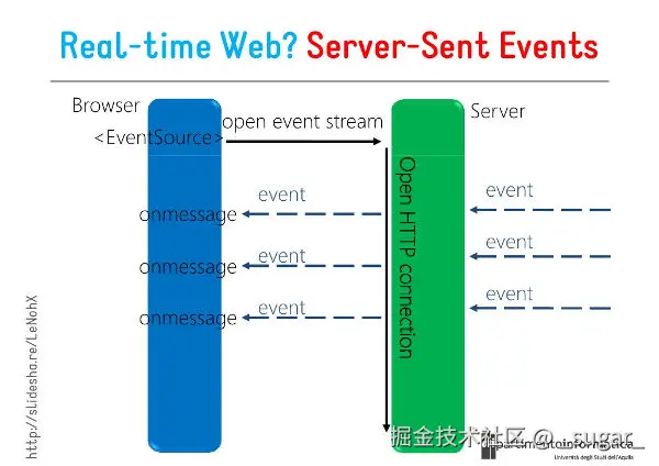 - 使用简单,后端返回 content-type:text/event-stream 类型的数据即可,text/event-stream 将消息视为一系列流事件