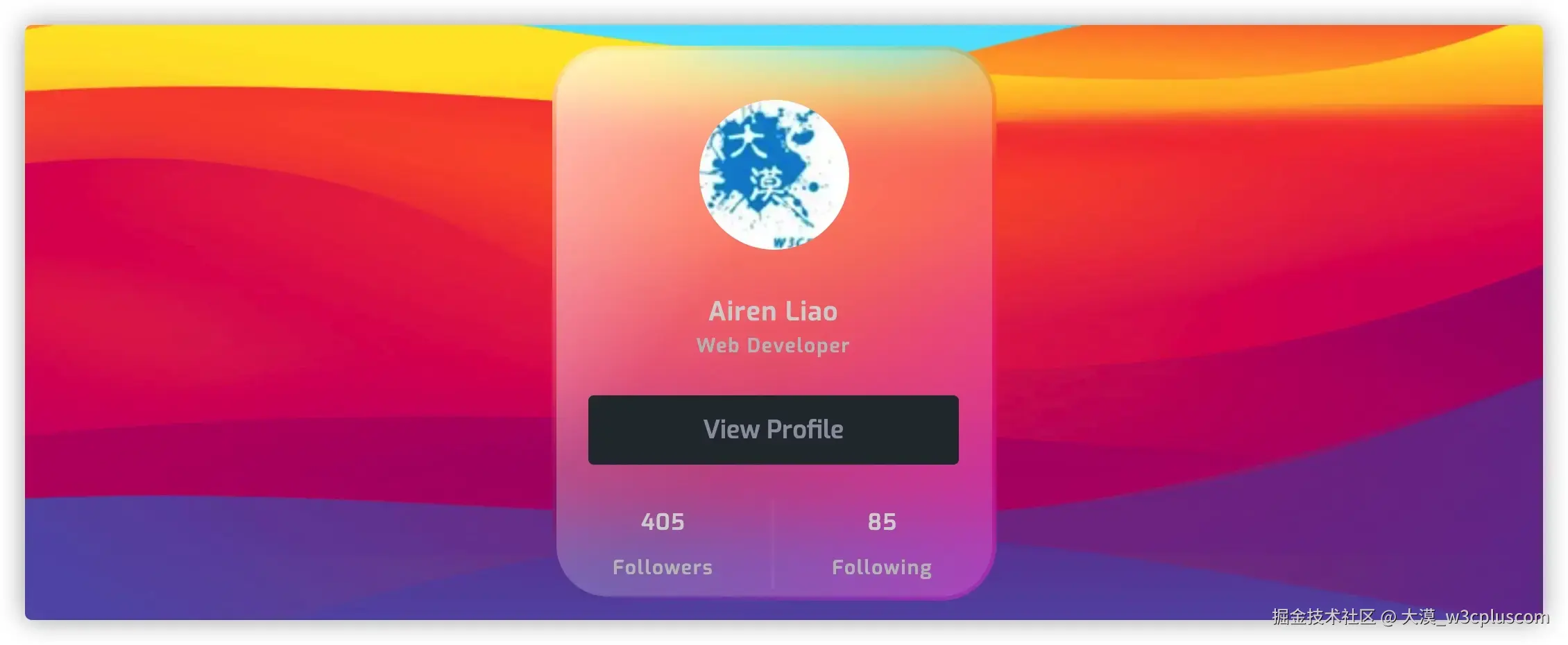 按这样的方式在头像的边框和底部的内容区域添加磨砂玻璃效果: