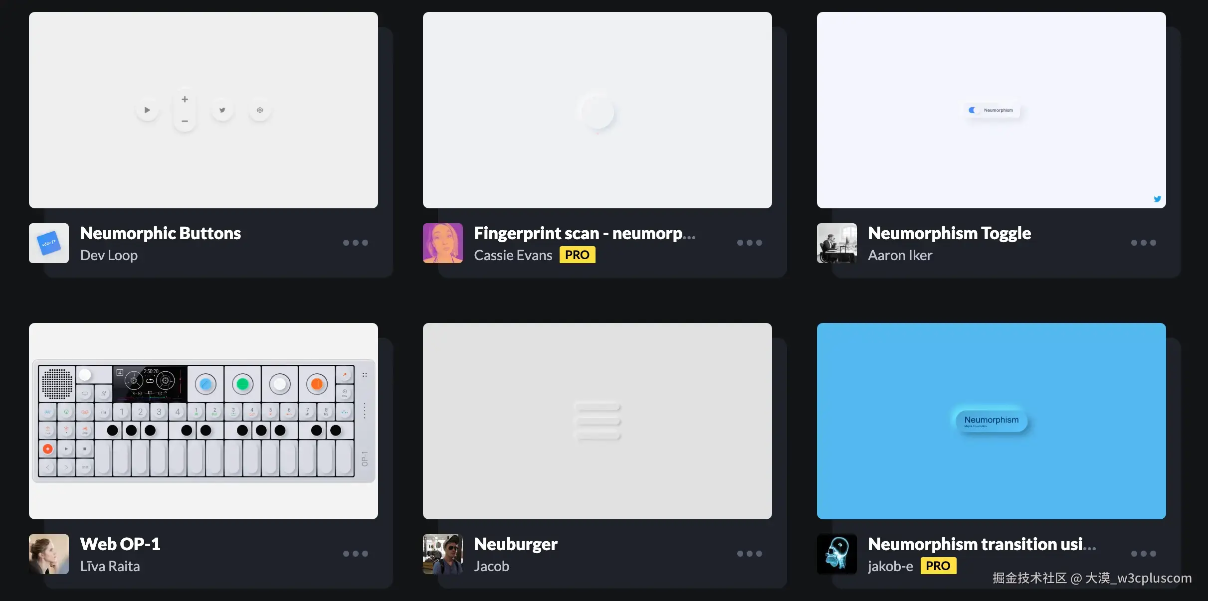 另外在Codepen上也能找到很多有关于 Neumorphism UI的Demo效果: