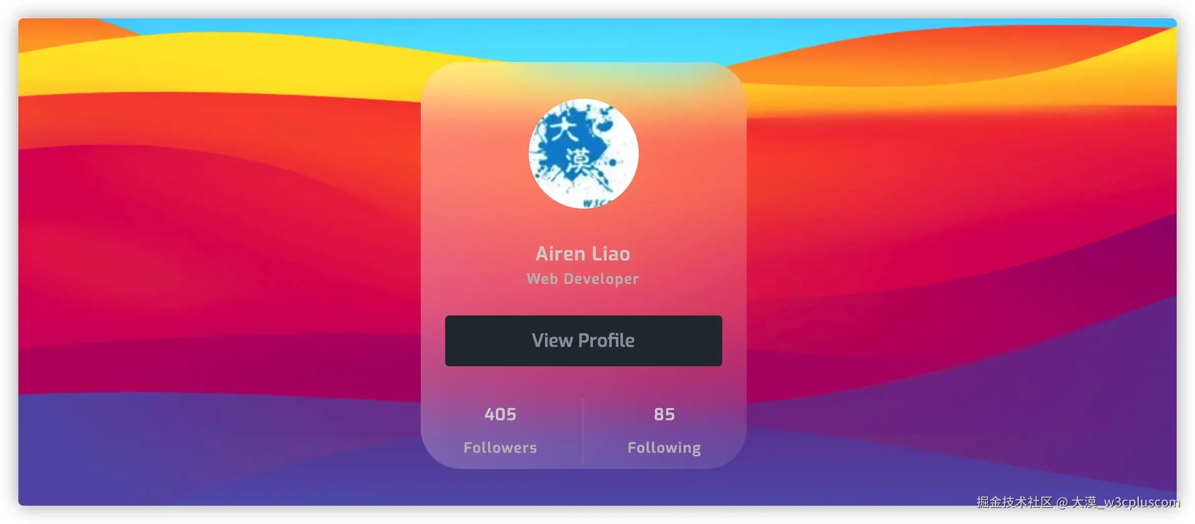 我们按这个方式给用户头像和底部内容区域添加相似的玻璃模糊的效果: