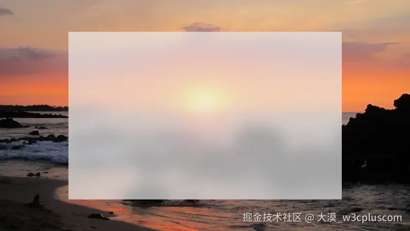 接着使用CSS来写亚克力的效果。实现亚克力效果和磨砂玻璃的效果相似,同样可以使用filter和backdrop-filter。使用filter实现亚克力效果,需要新增一个::after伪元素添加纯色背景层。同样在上面的示例基础上,我们先来看filter实现亚克力的效果: