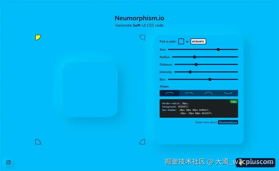 在社区中有一款在线工具 Neumorphism.io 可以自动生成Neumorphism UI效果所需要的CSS代码。