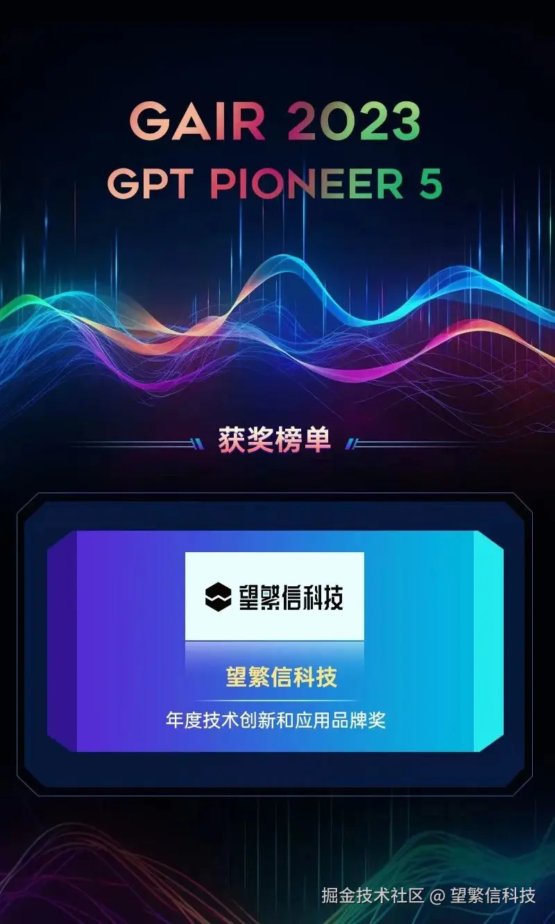 会上公布了「GAIR 2023 GPT Pioneer 5」榜单,望繁信科技凭借完全自主研发的流程智能平台,以及一系列在头部企业中的成功实践案例,与百度智能云、阿里云、知乎等业内知名企业共同入选榜单,荣获年度技术创新和应用品牌奖。