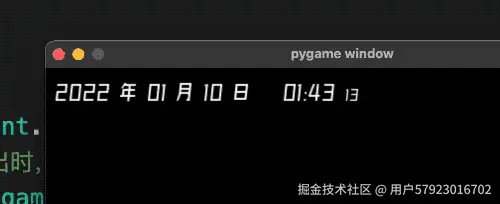 在pygame的主循环中调用getTime,并将时间文本绘制到屏幕上,一个小时钟就做好了。