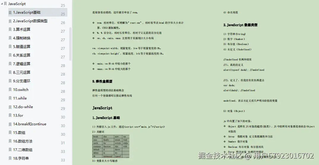**JavaScript:**JavaScript基础,JavaScript数据类型,算术运算,强制转换,赋值运算,关系运算,逻辑运算,三元运算,分支循环,switch,while,do-while,for,break,continue,数组,数组方法,二维数组,字符串