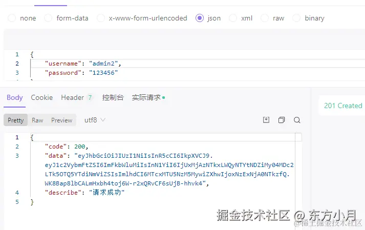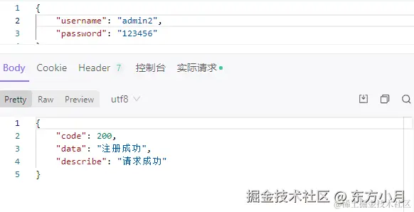 可以发现注册成功了,同样的登录接口逻辑也一样
