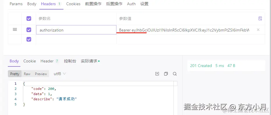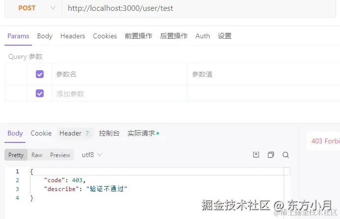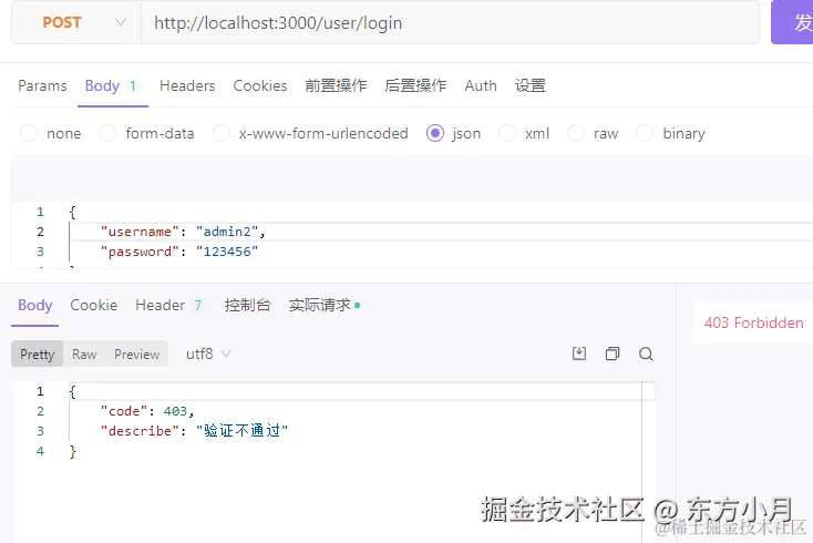 可以发现请求被拦截了。我们通过 login 接口获取一个 token 加到请求头中再试一下看看