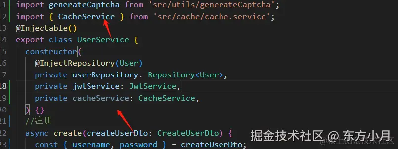 接下来我们需要将图片里的字符缓存在 redis 中,我们可以通过captcha.text拿到图片中的字符。同时需要在user.module.ts导入 redis 缓存模块
