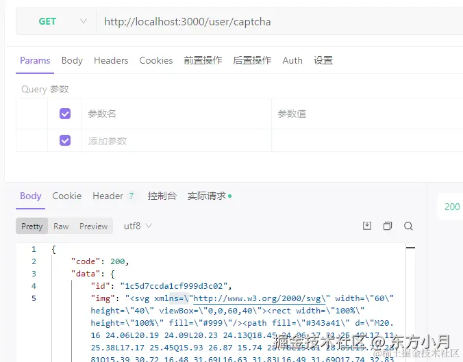 它的使用方法也很简单,直接调用 create 方法传入一些配置参数即可,新建utils/generateCaptcha.ts写一个生成图形验证码和随机字符 id 的函数