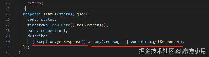 这样的话在我们自定义异常过滤器http-exception.filter.ts中的exception.getResponse()获取的就是上面那种格式