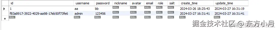 我们在实体中新增包含 uuid,用户名,密码,头像,邮箱等等一些字段,这里便于测试先将除了用户名和密码的其它字段都设置为可以为空的状态