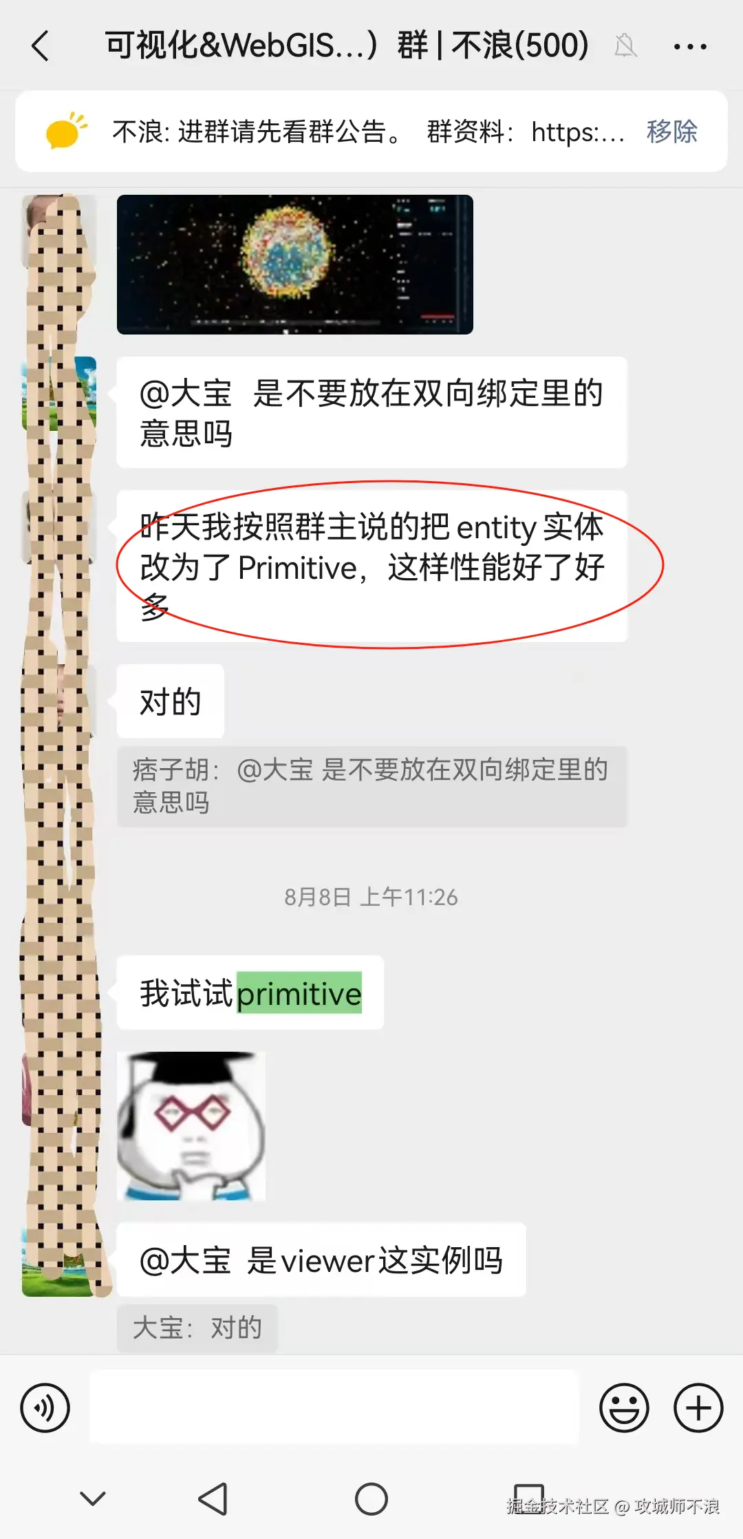 我问他,你是不是用Entity渲染的,他说是,我说你去了解下Primitive,改成它去渲染,几十万个点瞬间秒出!