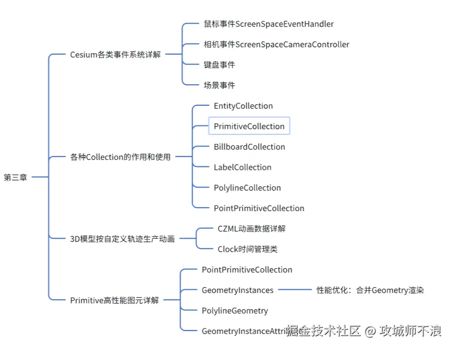 接下来,介绍一下Cesium-V1版本教程的目录大纲,内容从基础开始,由浅入深。