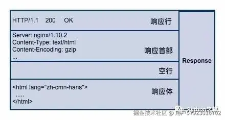 服务端接收请求并处理后,返回响应内容给客户端,同样地,响应内容也必须遵循固定的格式浏览器才能正确解析。HTTP 响应也由3部分组成,分别是:响应行、响应首部、响应体,与 HTTP 的请求格式是相对应的。