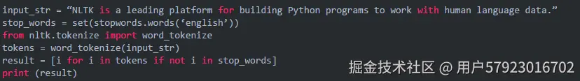 终止词(Stop words) 指的是“a”,“a”,“on”,“is”,“all”等语言中最常见的词。这些词语没什么特别或重要意义,通常可以从文本中删除。一般使用 Natural Language Toolkit(NLTK) 来删除这些终止词,这是一套专门用于符号和自然语言处理统计的开源库。