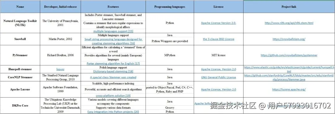 词干提取是一个将词语简化为词干、词根或词形的过程(如books-book,looked-look)。当前主流的两种算法是 Porter stemming 算法(删除单词中删除常见的形态和拐点结尾) 和 Lancaster stemming 算法。