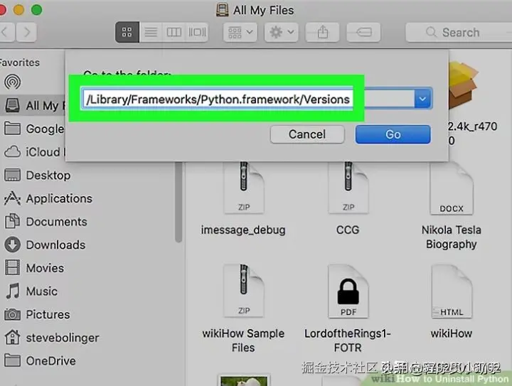 根据安装的Python版本,将在“转到文件夹”文本框中键入以下地址之一。